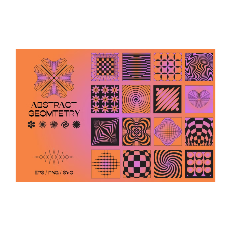 Abstract geometry - the new collection with vector graphic elements - logo templates, frames, and prints. Decorative and minimalistic illustrations. 150 elements in 2 colour variations for your design projects