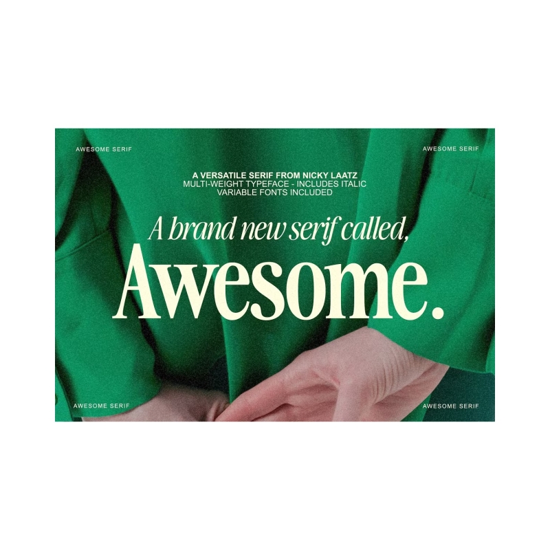 قل مرحبا لرائع Serif :) عائلة حالمة متعددة الوزن ومتعددة الارتفاعات - في كل من الأنماط العادية والمائلة - 30 خطا في المجموع. يتم تضمين خطين متغيرين مفيدين إذا كان لديك برنامج يمكنه قراءة الخطوط المتغيرة.