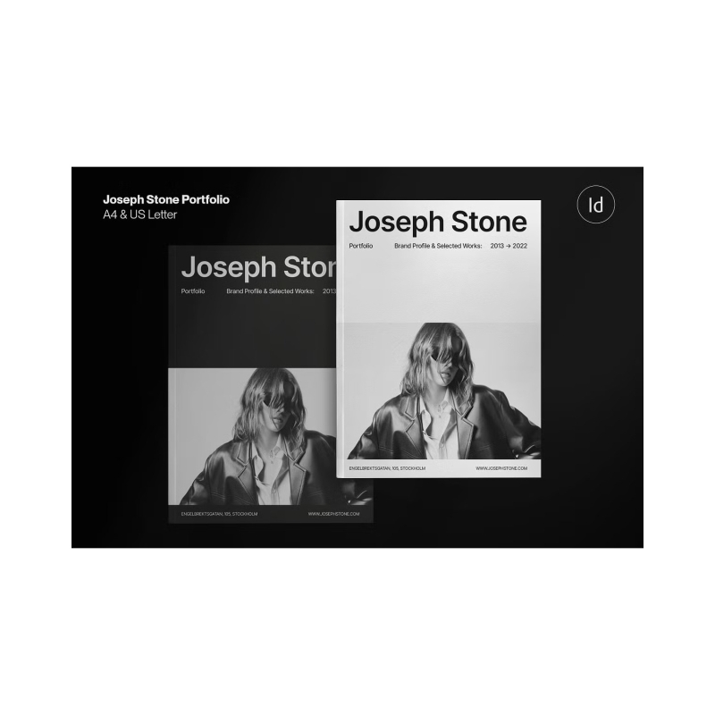 The 44-page JOSEPH STONE Portfolio and Resume is a set of Adobe InDesign compatible templates, designed in both A4 (297x 210mm) & US letter (8.5"x11"). This modern aesthetic template is perfect for all designers, photographers, illustrators, architects, stylists, artists, art directors, agencies of all sizes, and more. It will look as good on screen as printed.